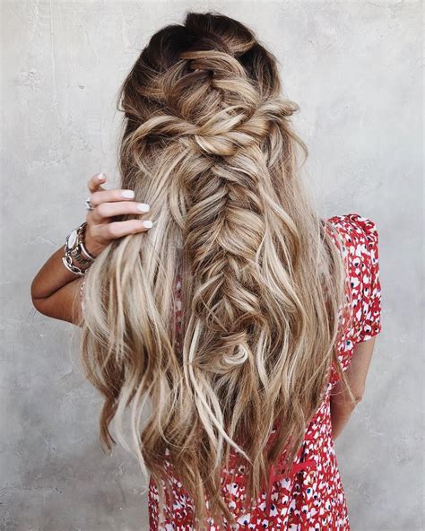 If you’re feeling adventurous, experiment with a fishtail braid. This braid involves weaving smaller sections of hair, resulting in a delicate and intricate pattern. It’s a beautiful way to add a touch of bohemian flair to your half-updo.