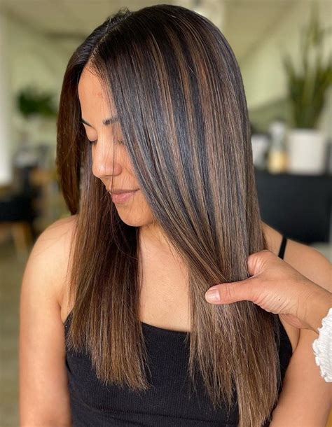 Balayage, a French word meaning "to sweep," is a freehand highlighting technique that creates a soft, blended effect. Unlike traditional foiling, balayage allows for a more natural and customized color application. When applied to brown hair, it can add dimension, warmth, and a touch of effortless chic. Straight hair, with its sleek and uniform texture, provides the perfect canvas for showcasing the subtle nuances of balayage. The highlights can truly pop against the smooth backdrop, creating a stunning visual effect.
