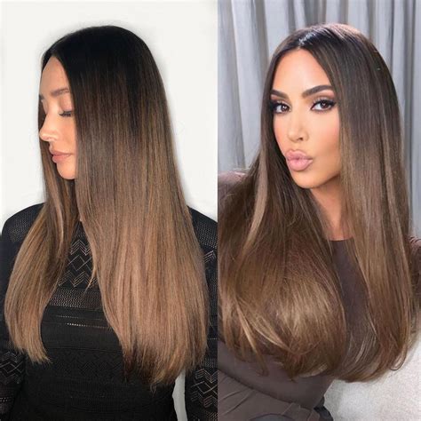- How can I achieve Kim K's brown hair with highlights look? Consult a professional stylist for best results.