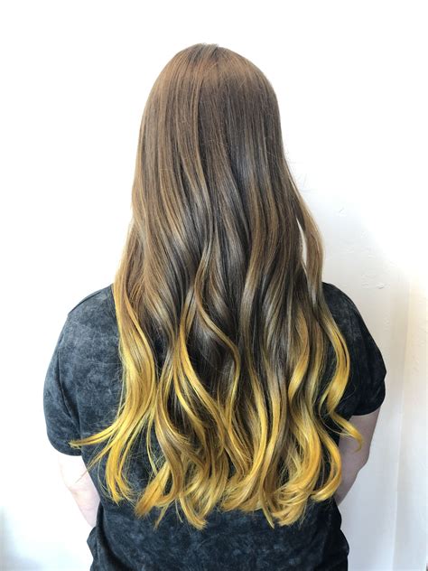 Dark brown hair with yellow highlights is a classic combination that offers a beautiful contrast and adds dimension to the hair. The dark brown provides a rich, deep base, while the yellow highlights bring a touch of brightness and warmth. This versatile color combination can be adapted to suit a variety of skin tones and hair lengths.